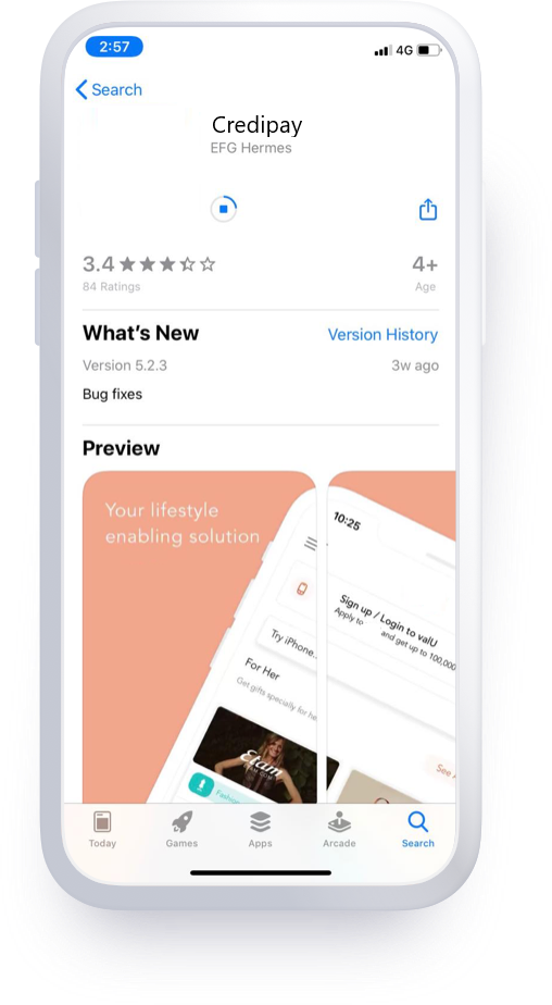 To install Credipay, download the application from the Apple App Store, Google Play or Huawei AppGallery.